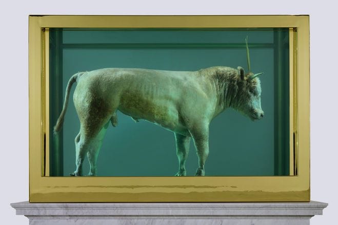 - 동물의 시체를 포름알데하이드(액체 속 보관) 처리한 후 아크릴 박스에 담아 전시한 “살아있는 자의 마음속에 있는 죽음의 물리적 불가능성 The Physical Impossibility of Death in the Mind of Someone Living" 이라고 불리는 작품이 있습니다. 이 작품들은 현대 예술의 상업적 성공과 논쟁을 불러일으켰습니다.