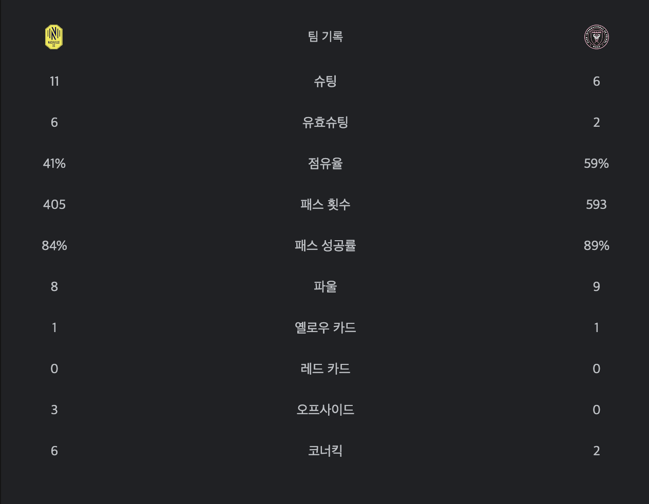 메시를 비롯하여 부스케츠와 알바까지 이적생 바르셀로나 삼총사 모두 선발로 나선 마이애미는 높은 점유율을 기반으로 경기를 풀어나갔습니다.