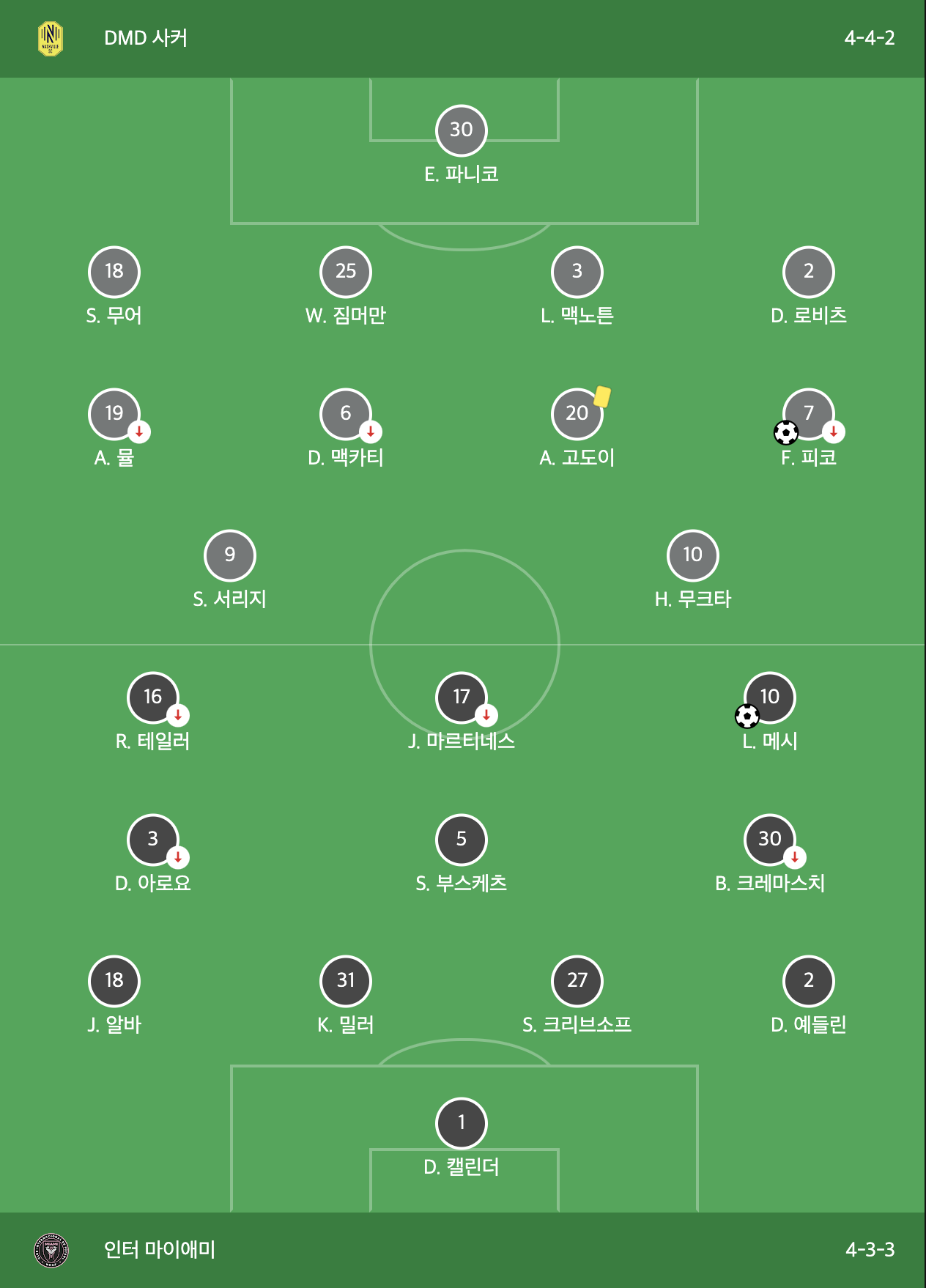 메시를 비롯하여 부스케츠와 알바까지 이적생 바르셀로나 삼총사 모두 선발로 나선 마이애미는 높은 점유율을 기반으로 경기를 풀어나갔습니다.