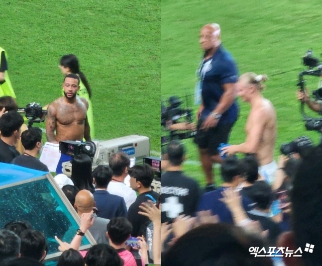 이날 경기가 끝난 후에도 선수들은 팬서비스를 잊지 않았습니다. 선제골을 넣은 데파이는 인터뷰 팬에게 자신의 유니폼 상의를 벗어 던졌고, 홀란드는 경기장을 빠져 나가기 자신의 유니폼 상의를 팬들에게 던져주고 미소와 함께 손을 흔들었습니다. 아틀레티코의 대표선수 그리즈만 역시 뜨거운 팬서비스를 보여줬습니다.