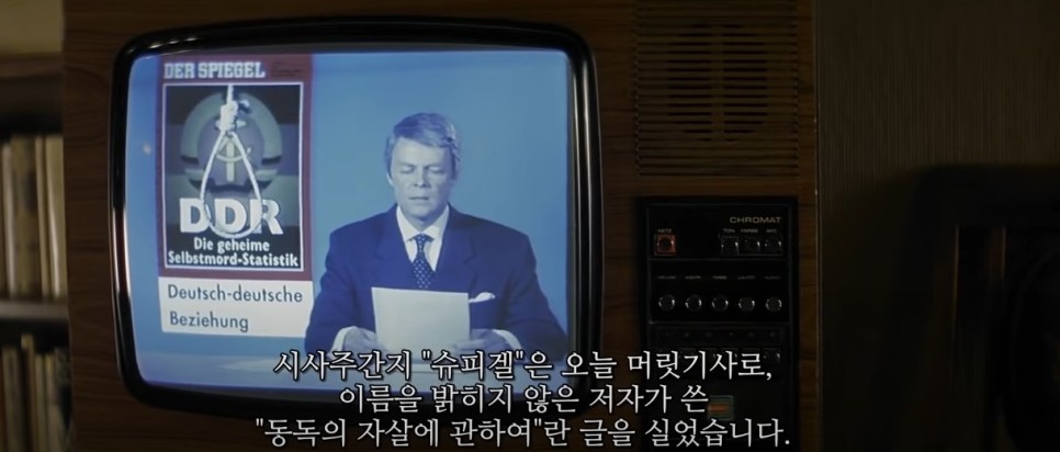 이런 상황은 전혀 알지 못한 채 '자살률이 치솟고 있다'는 현실고발 원고 작성에 집중하던 '드라이만'은 어느날 문지방에 타자기를 숨기는 모습을 '크리스타'에게 보이고 맙니다. 그녀는 '드라이만'에게 전적인 믿음을 전했고 장관'헴프'는 상심의 나날을 보냅니다. 완성된 원고는 비밀리에 서독으로 보내지고 매체를 통해 공개되자 이내 독일 전체를 뒤흔들게 됩니다.