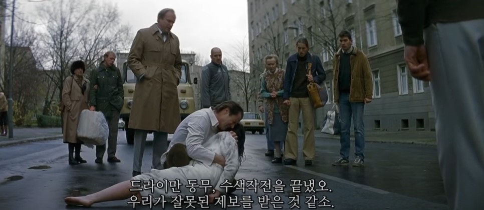 동료들이 그를 돕기 위해 나서고 그의 집이 안전한지 확인하기 위하여 일부러 한 동료의 서독행을 경로와 이동수단까지 자세히 발설하며 누출시킵니다. 이를 들은 '비즐러'는 바로 보고하려 수화기를 들지만 '드라이만'에게 마음이 동하여 보고하지 않고 내려놓습니다.