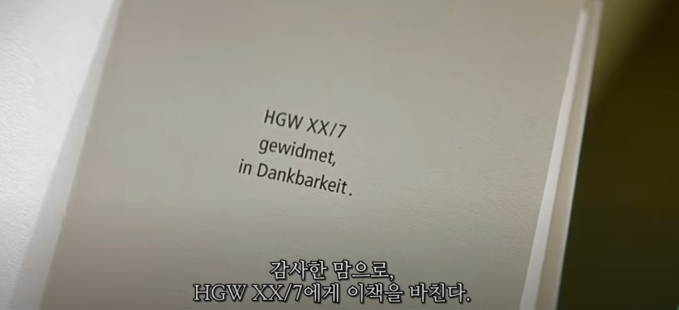 책표지를 열자 "감사의 마음을 담아 HGW XX/7 에게 이 책을 바칩니다" 라는 문구가 보입니다.