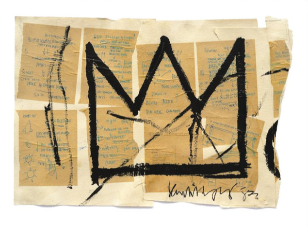 • "Untitled (1982)": 이 작품은 바스키아의 글씨와 도형을 조합한 스타일을 잘 보여주는 작품입니다. 그림의 하단에는 고유의 상징적인 기호들이 배치되어 있으며, 이는 바스키아의 작품에 자주 등장하는 요소 중 하나입니다.
