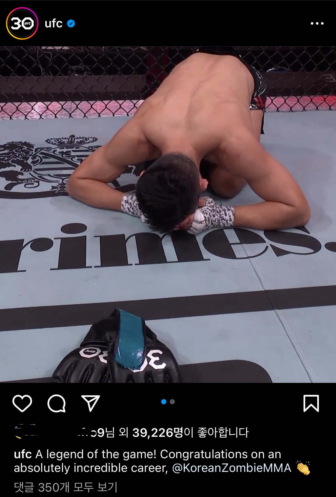 모든걸 이루진 못했지만 충분히 이룰만큼 이뤘고 제 머리상태에서 더 바라는건 욕심같아 멈추려고 합니다. 제가 해온것에 비해 과분한 사랑을 받은것 같아 모두에게 감사합니다. 이제 더 이상 평가받고 비교당하는 삶을 살지 않을것 같아 홀가분하고 후련하고 또 무섭기도 합니다.. 뭘 할지 모르겠지만 뭘 해도 최선을 다하고 뭘해도 진심으로 해보려합니다. 그동안....코리안좀비를 사랑해주셔서 정말 감사합니다. UFC에서 싸우는 동안 정말정말 행복했습니다. @ufc 와 @seanshelby @danawhite 이런 인생을 살게 해줘서 고마워요. 그리고 나의 마지막 싸움 상대가 되어준 @blessedmma 영광이었습니다. 언젠가 또 밝게 웃으면서 인사합시다.
