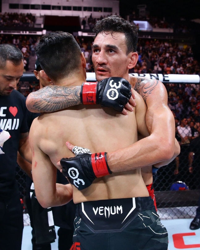 맥스 할로웨이는 경기가 끝난 후 이어진 인터뷰에서 "경기에 대해 말하기 어렵다"며 자신이 나고 자란 하와이의 인명피해를 이야기하며 응원을 바랬다. 그 후 정찬성에게 다가가며 세레모니를 간소하게 진행했습니다.